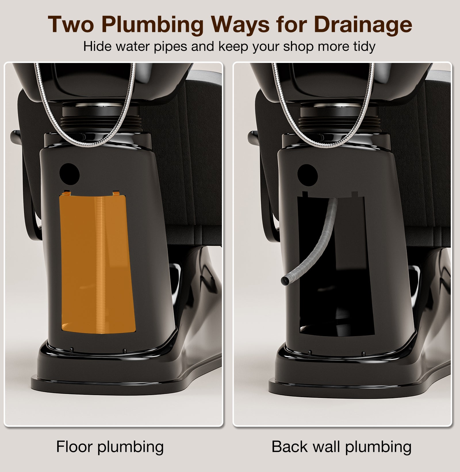 - 2 Drainage Options: The back of the wash station features a removable cover plate, allowing easy access for maintenance and inspection of the pipes. It can accommodate both wall and floor drainage, making it suitable for a variety of usage scenarios. (Note: The wall drainage outlet should be lower than the water pipe)