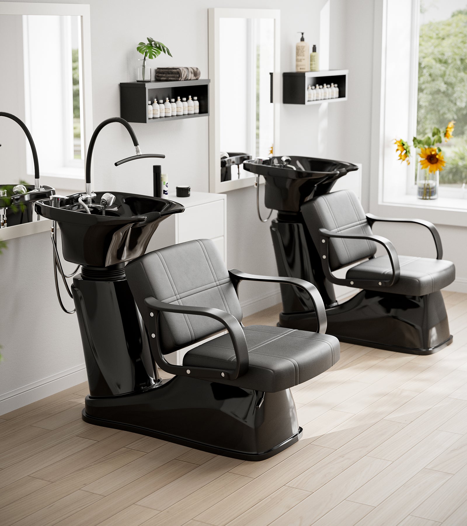 Estación de lavado con champú para salones, estación de salón con lavabo para champú, altura adecuada para combinar con la silla de champú
