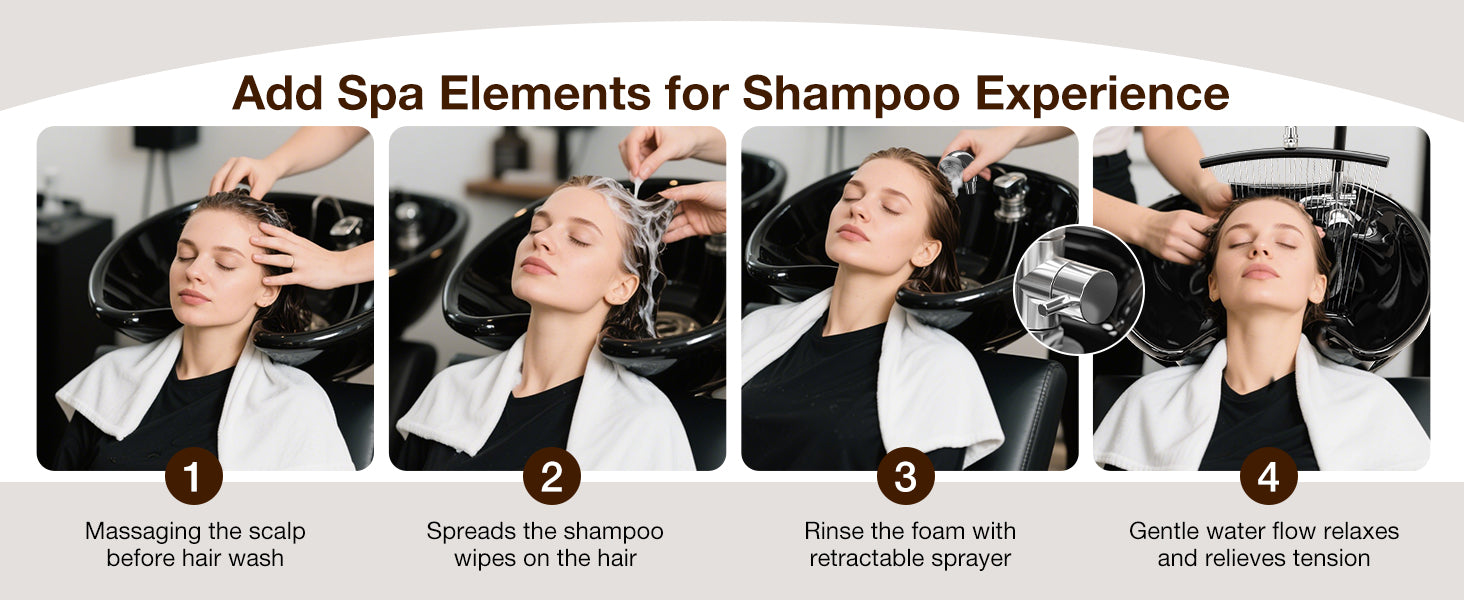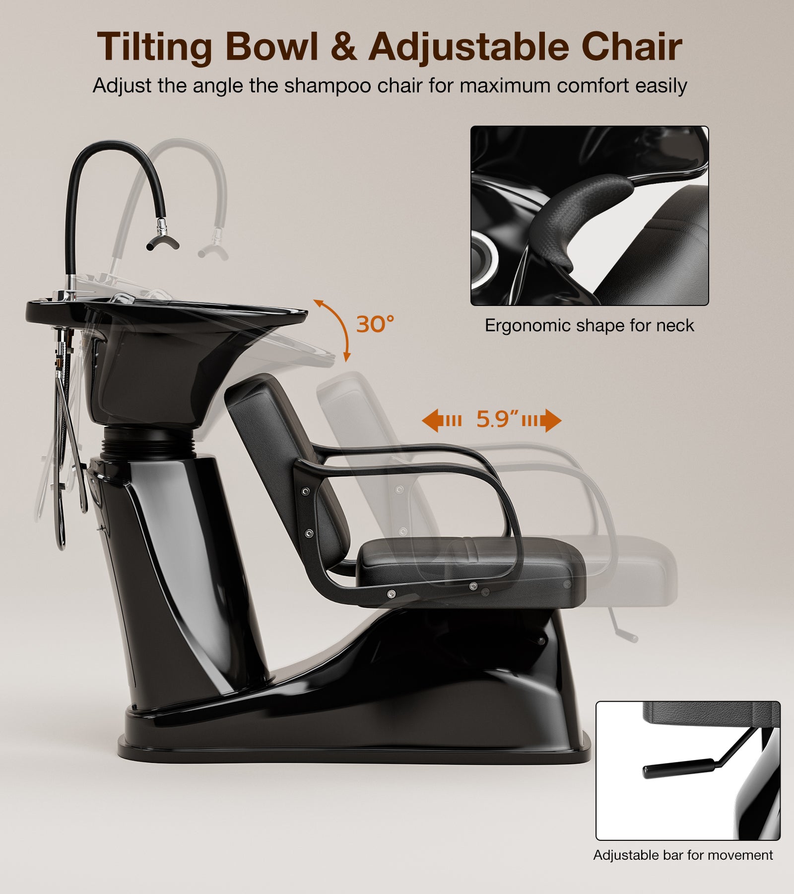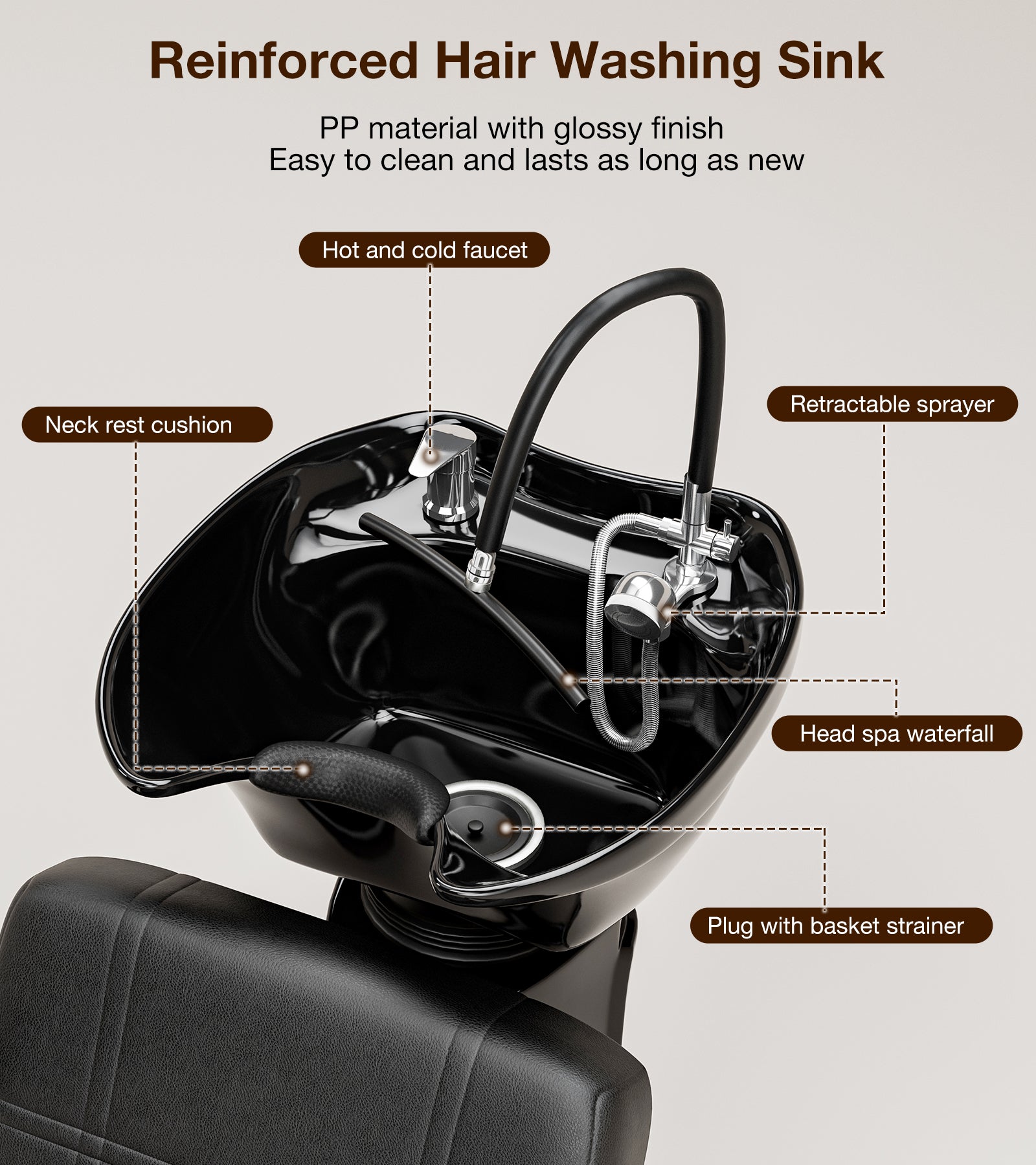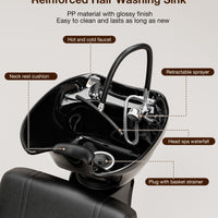 - Adjustable Sink: Made from high-quality ABS plastic. Lightweight and durable, resistant to breakage and hair dye corrosion, easy to clean. The adjustable angle design and silicone neck cushion ensure a perfect fit for the customer's neck and the sink, preventing water from wetting the collar while providing added comfort