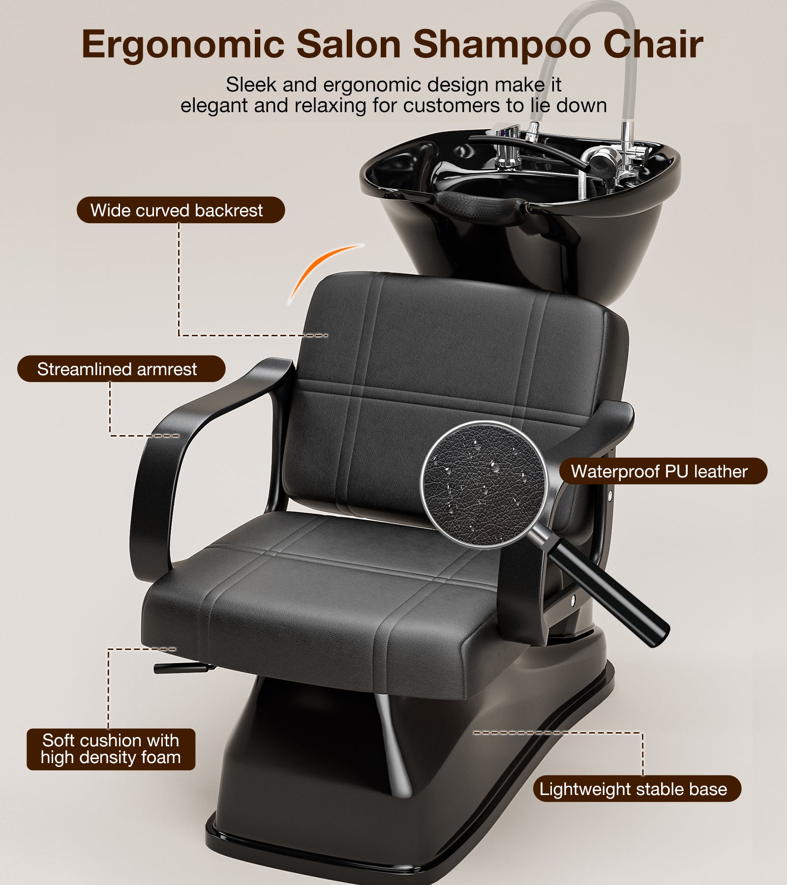Silla y lavabo para champú de salón, lavabo con lavabo inclinable, equipo de spa para barbería