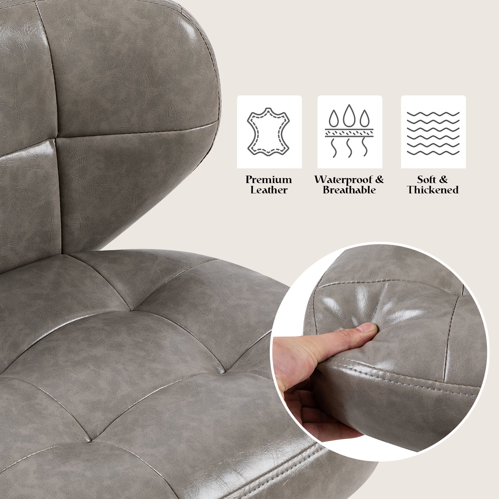 Filled with high-density thick sponge and elastic memory foam, supporting the whole body with even pressure, softer, covered with high-end PU leather with smooth surface.