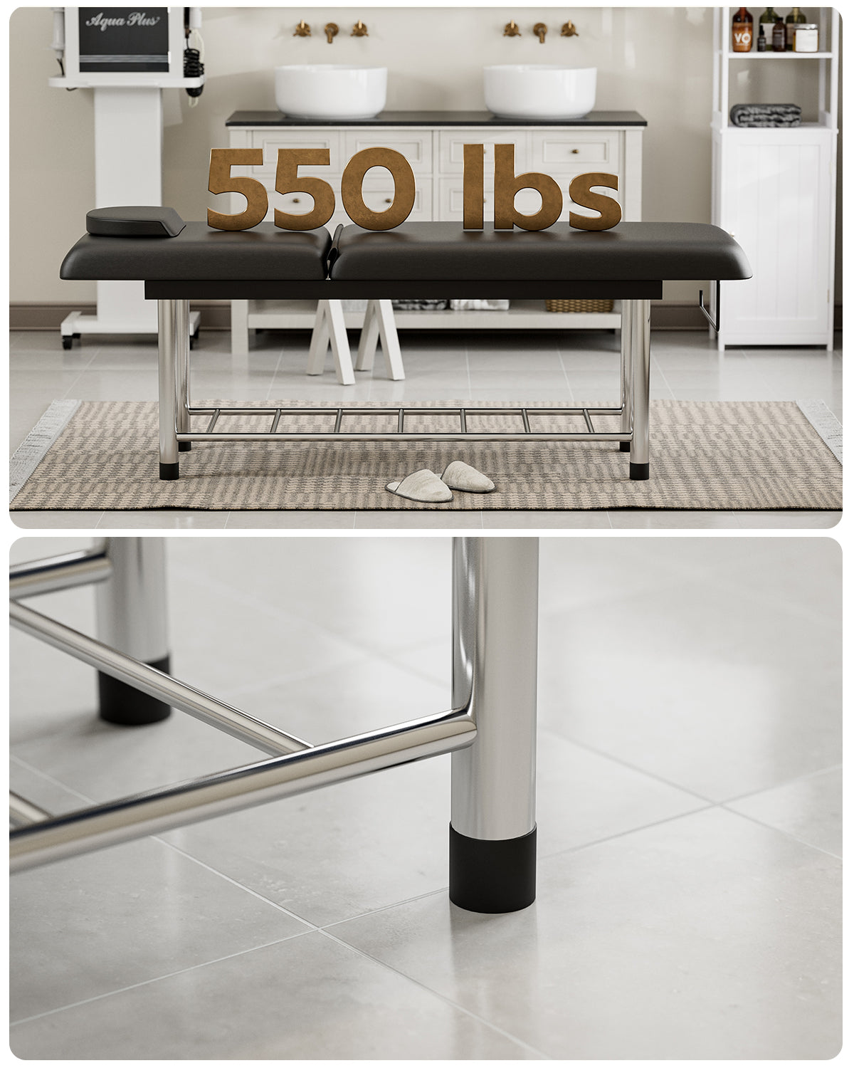 Robusta y fiable: Reforzada con una robusta estructura metálica, nuestra camilla de masaje eléctrica ofrece una estabilidad fiable con una capacidad máxima de 250 kg. Su estructura multipunto de fuerza garantiza una plataforma segura y estable para diversos tratamientos de masaje, garantizando la seguridad y comodidad tanto de terapeutas como de clientes, ya sea para terapia de tejido profundo o relajación suave.