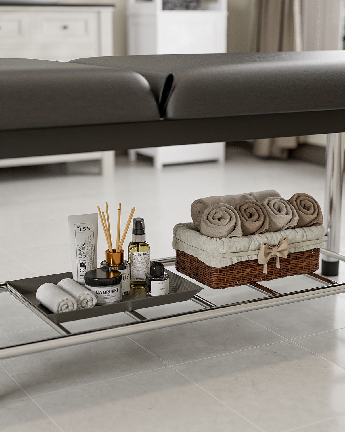 There is a shelf under the bed, which can hold a variety of items, making it convenient for beauticians to take things and give customers a better experience.
