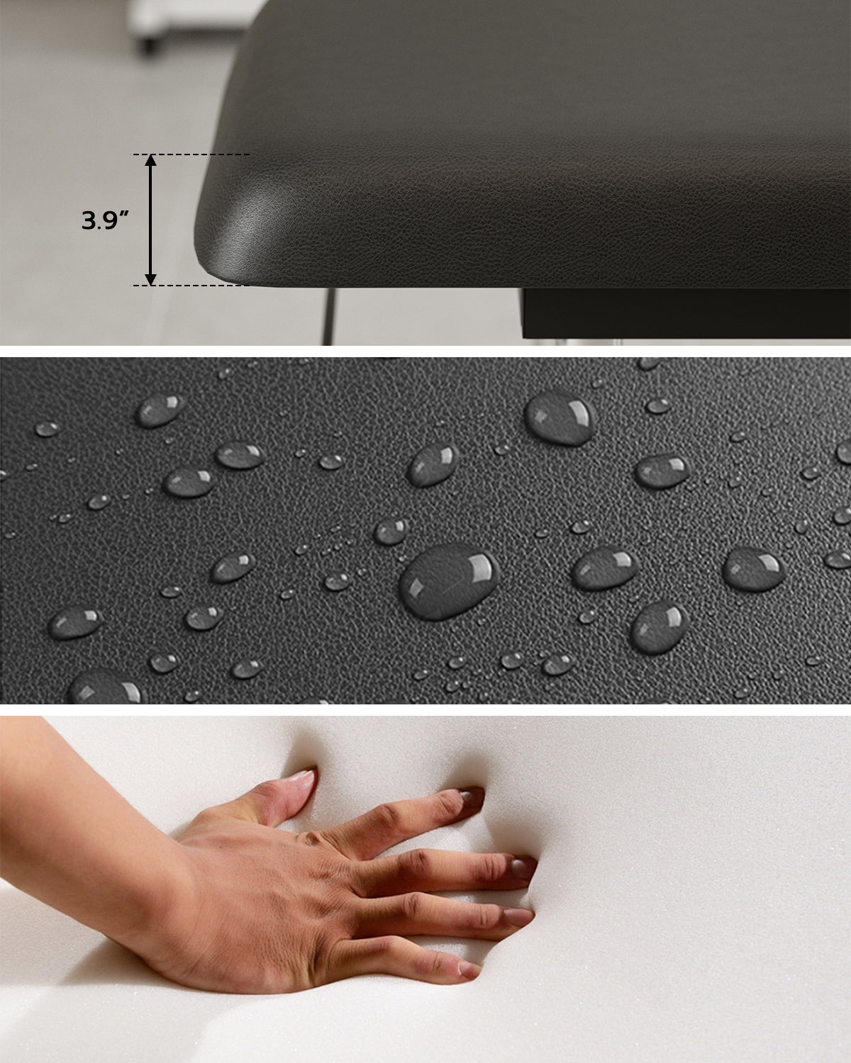 Fácil de limpiar y mantener: Nuestra camilla de masaje motorizada profesional está rellena de una esponja de alta resiliencia de 9,9 cm, estable bajo presión y resistente a la deformación. La funda de la camilla está revestida de cuero sintético PU agradable para la piel, impermeable, resistente al aceite, fácil de limpiar y libre de los olores desagradables de otros materiales sintéticos.