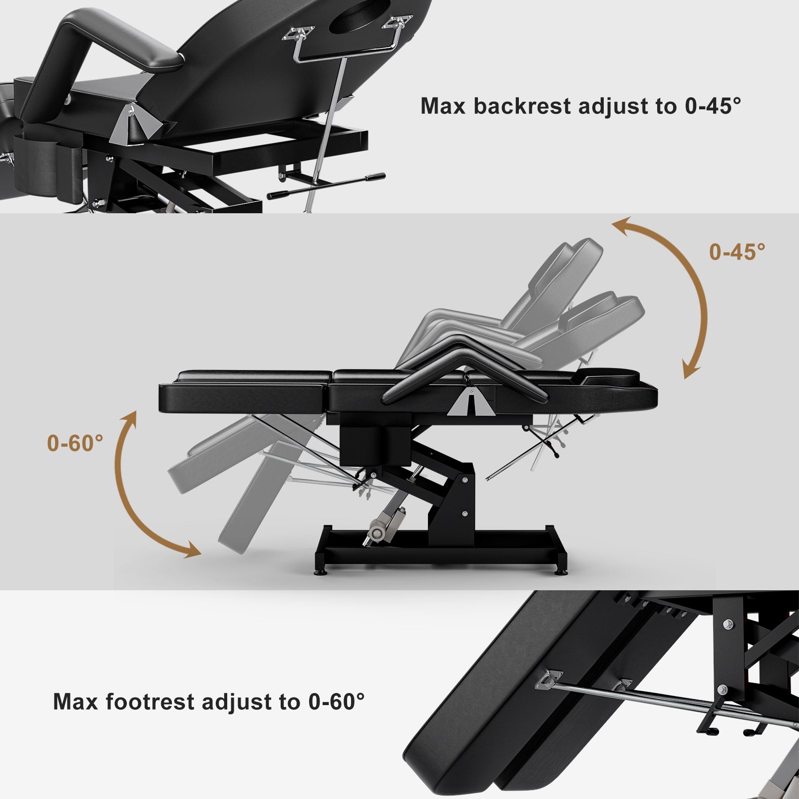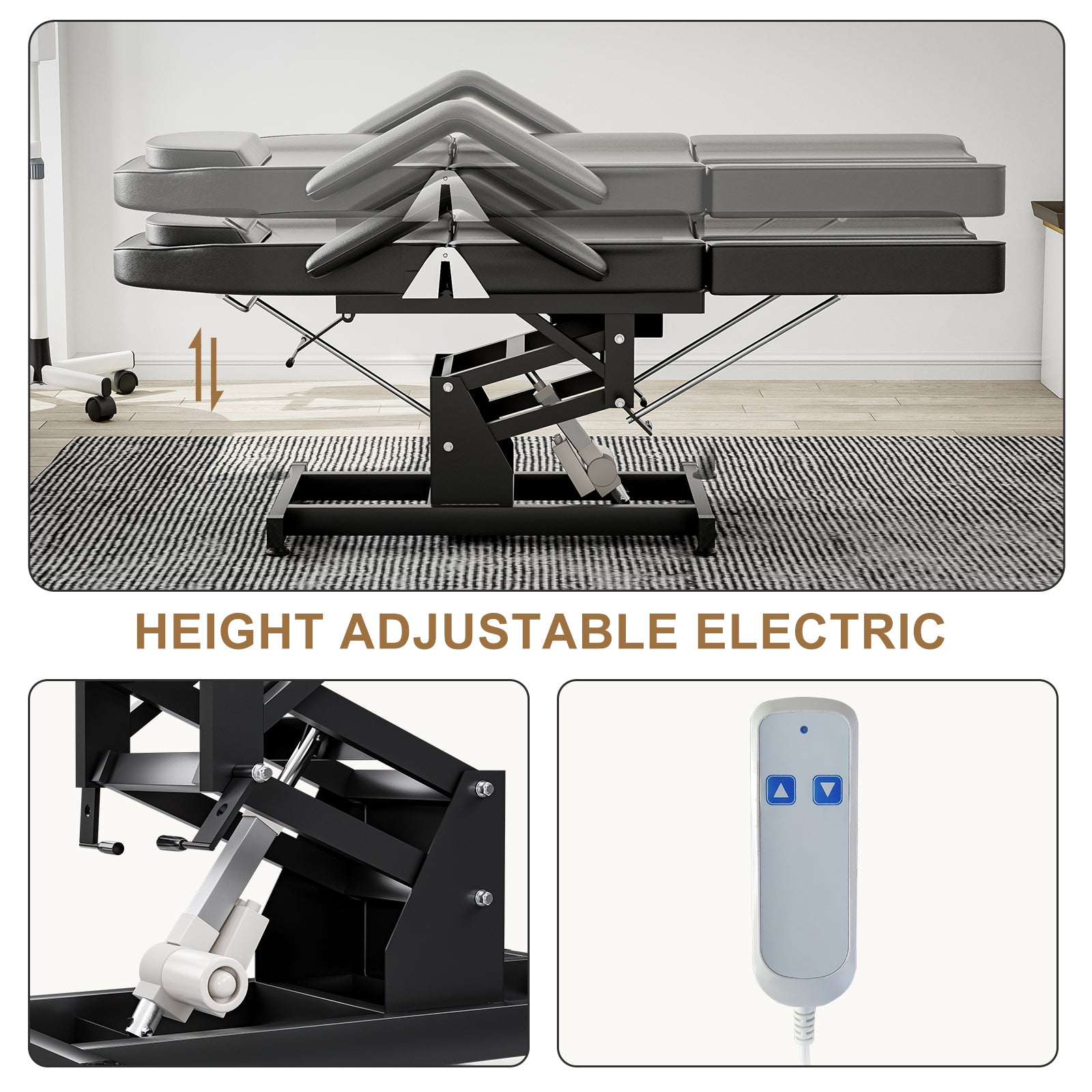 Altura ajustable eléctricamente: Nuestra camilla de masaje se ajusta fácilmente en altura de 53 a 84 cm mediante control remoto para adaptarse a diferentes tareas. El respaldo se eleva 75 grados y el reposapiés 45 grados. El cojín de cabeza extraíble con orificio para la cara facilita la conversión de posturas de masaje.