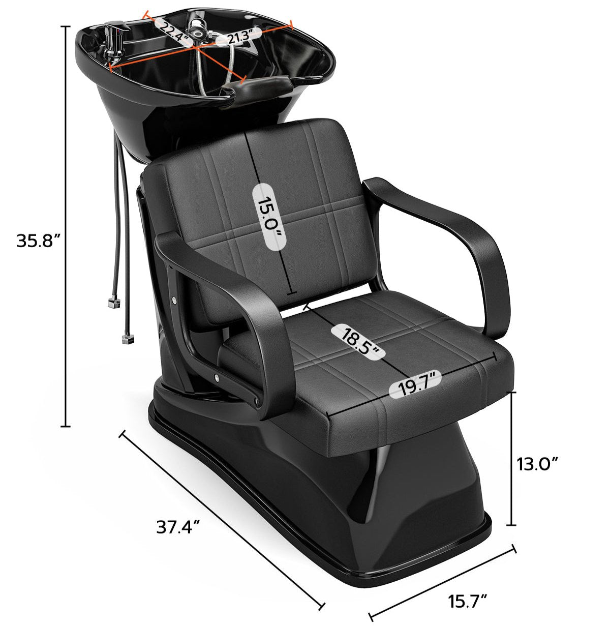 Ideal para barberías: Una excelente combinación de estación de lavado con champú incluye un lavabo y una silla. Con una altura de 90 cm, ideal para la mayoría de los estilistas, puede lavar el cabello de sus clientes en el lavabo del salón. Su amplio lavabo reduce la presión en el cuello al lavar el cabello.