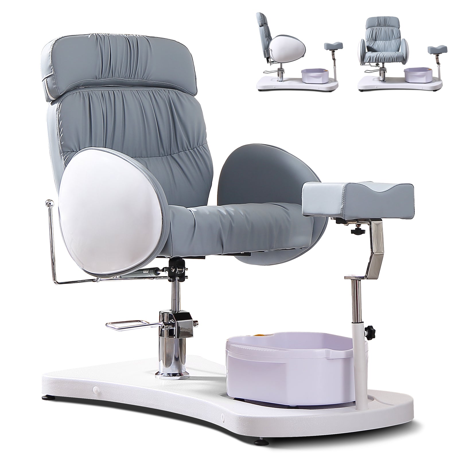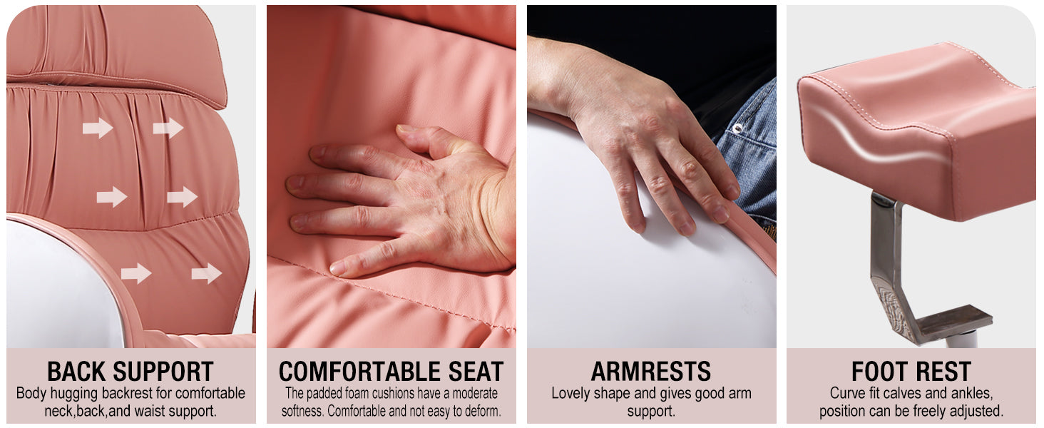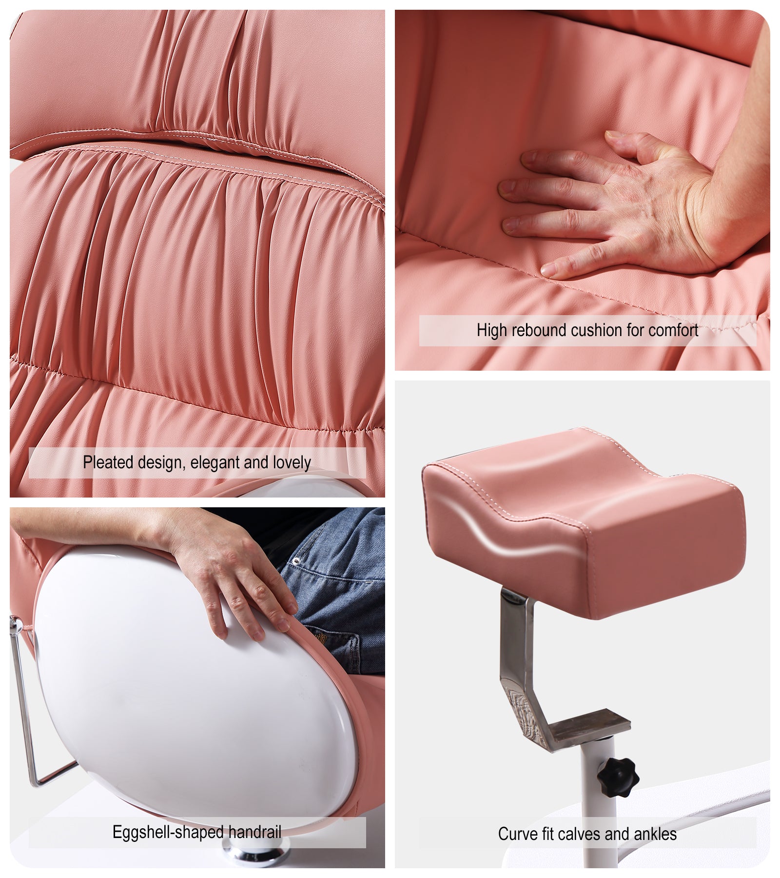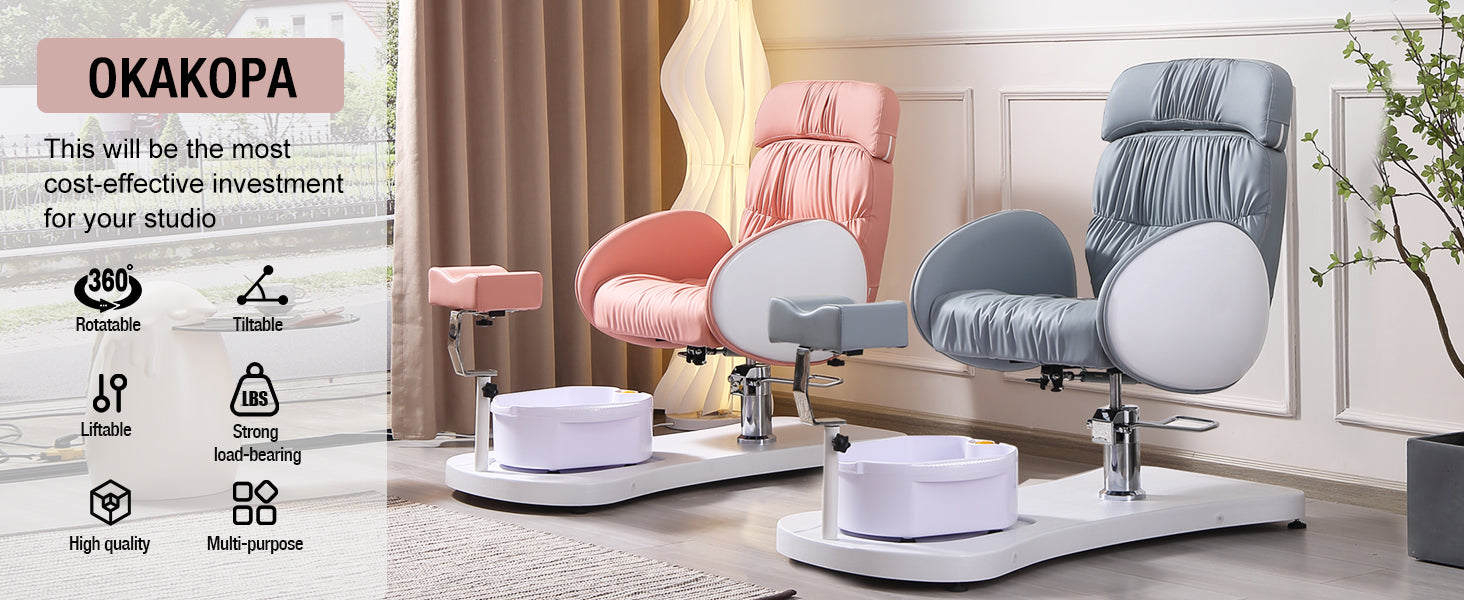 - Unique Appearance: Pleated leather and eggshell-like armrests makes this pedicure chair look elegant and lovely. Breathable and high elasticity thick cushion bring users comfortable experience. This chair is sure to attract clients to your salon even more