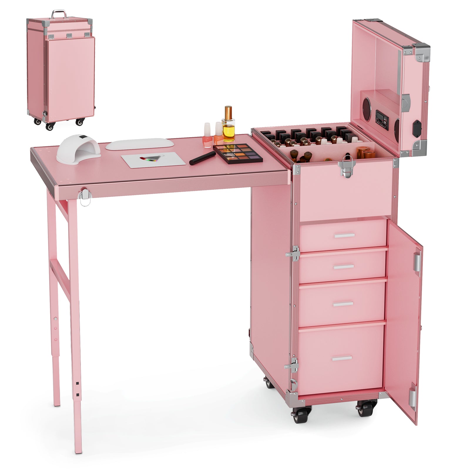 2 Desktop Portable Manicure Table, Foldable Travel Makeup Train Case