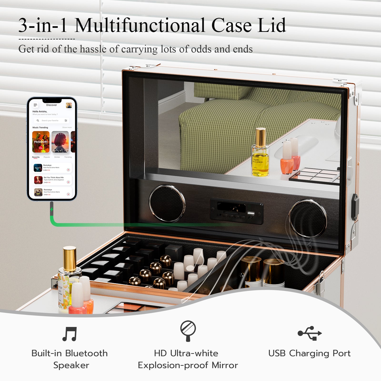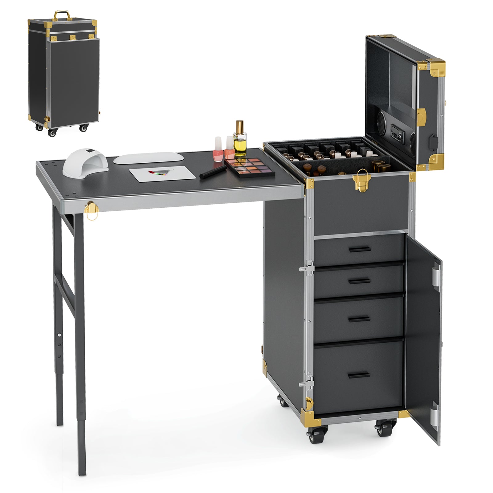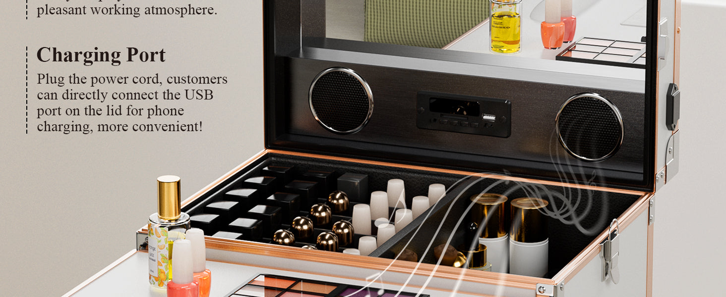Portable Nail Table Desk, Makeup Station w/Speaker and Led Light