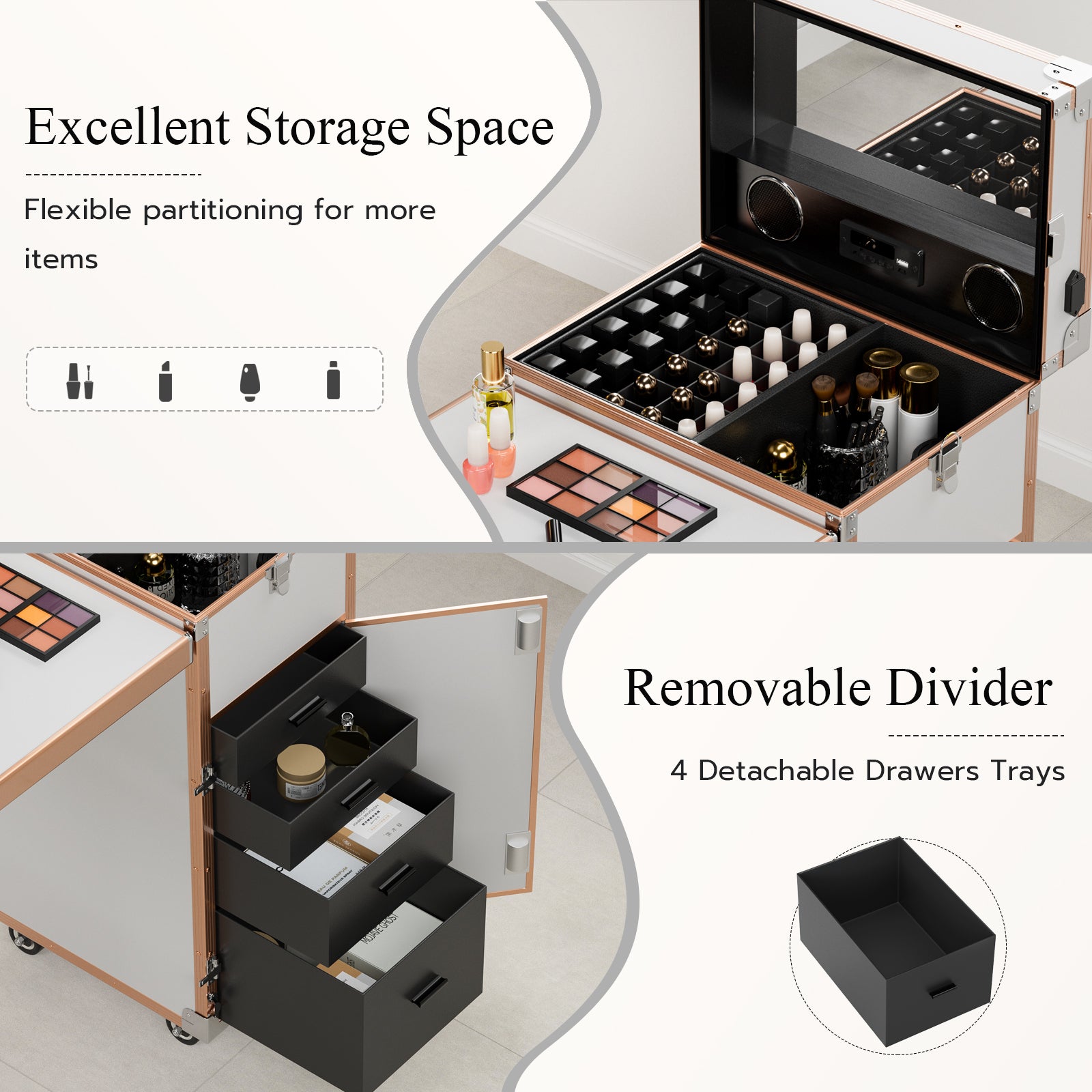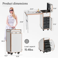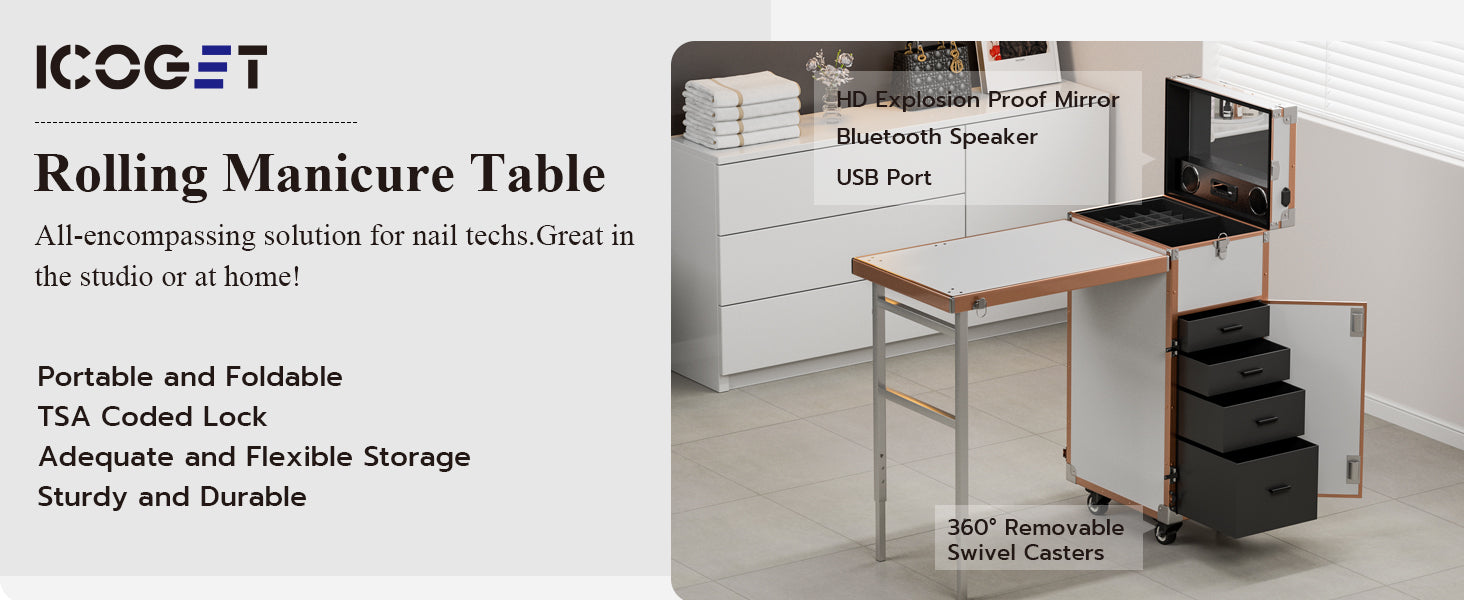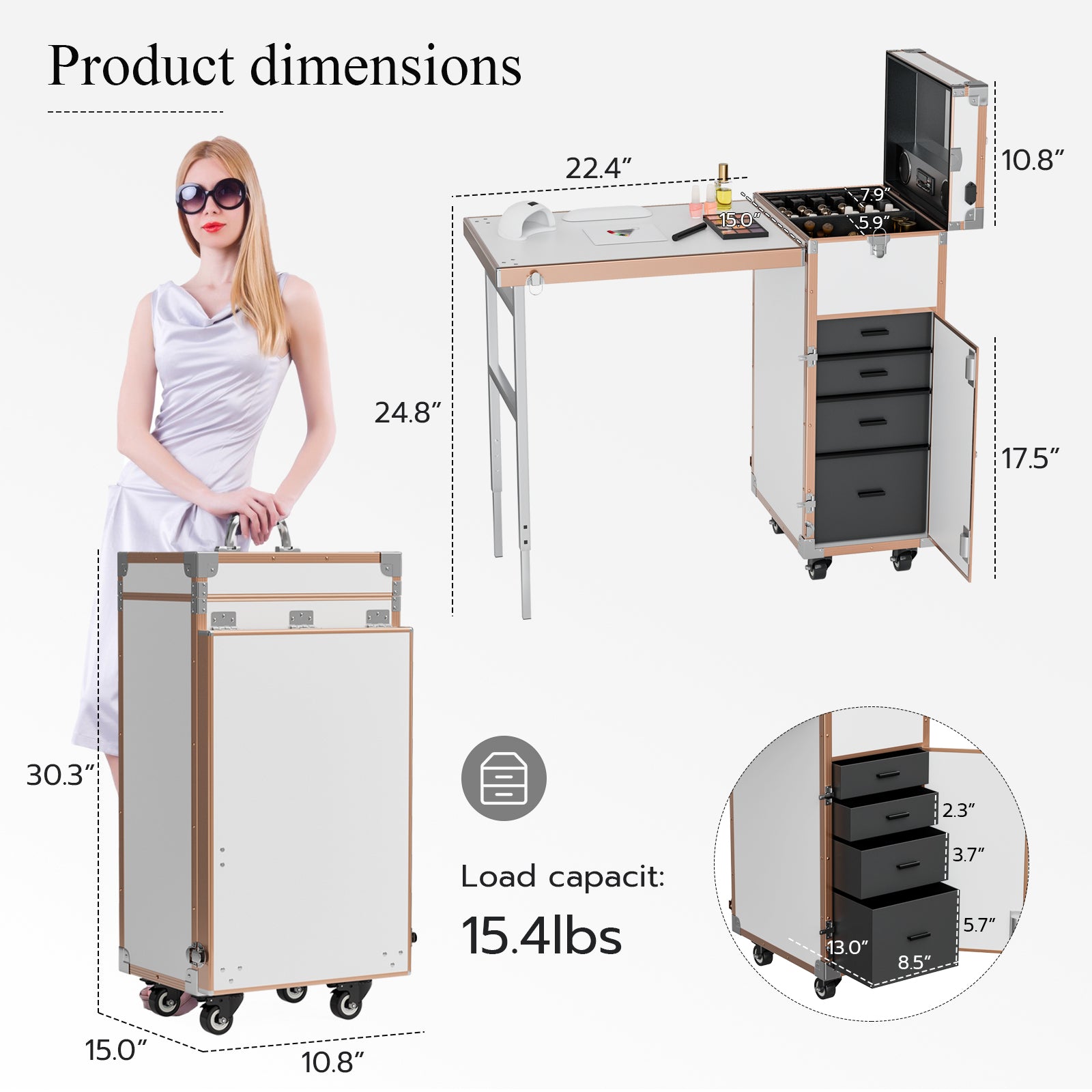 Portable Nail Table Desk, Makeup Station w/Speaker and Led Light