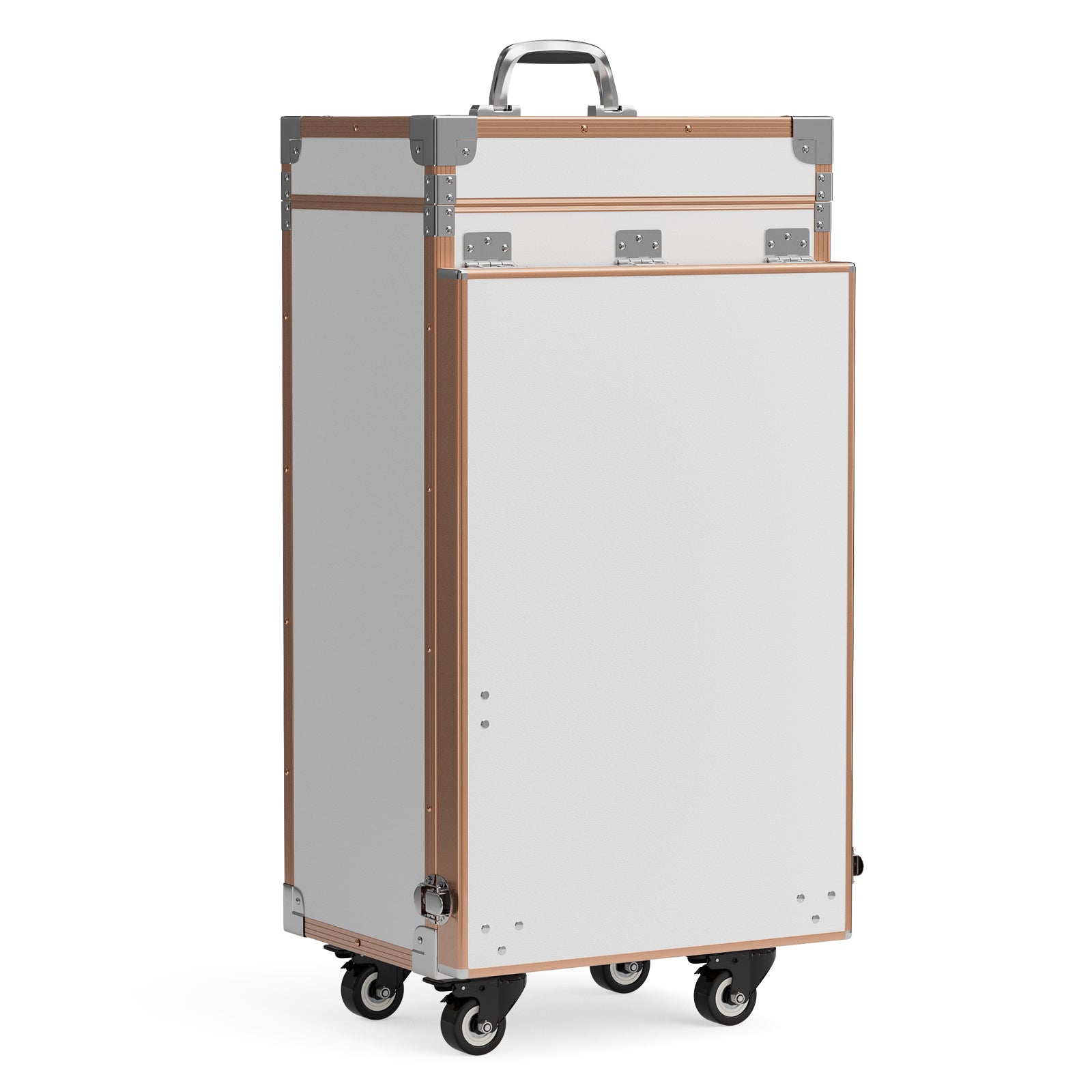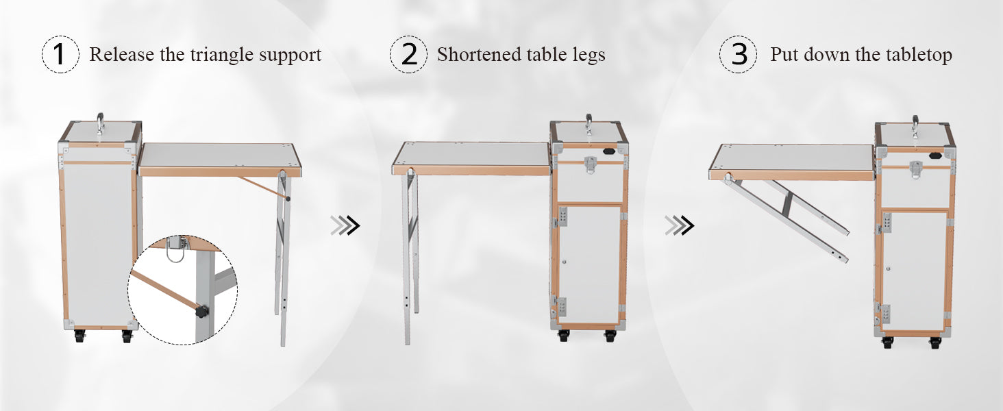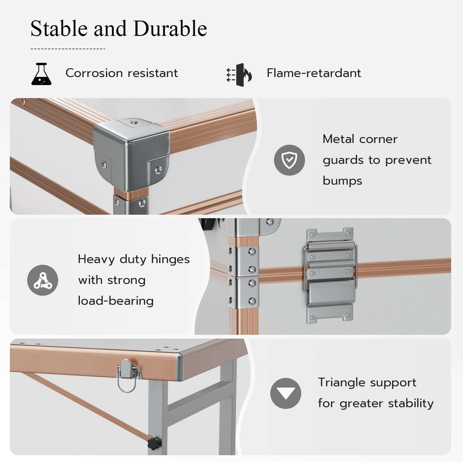 - Sturdy and Portable - The whole case is made of metal stand and flame-retardant sheets. Metal wrapped corners at the edges for better protection. The triangularly supported worktop is more stable. You can move it easily with 4 lockable 360°swivel casters after the table is folded