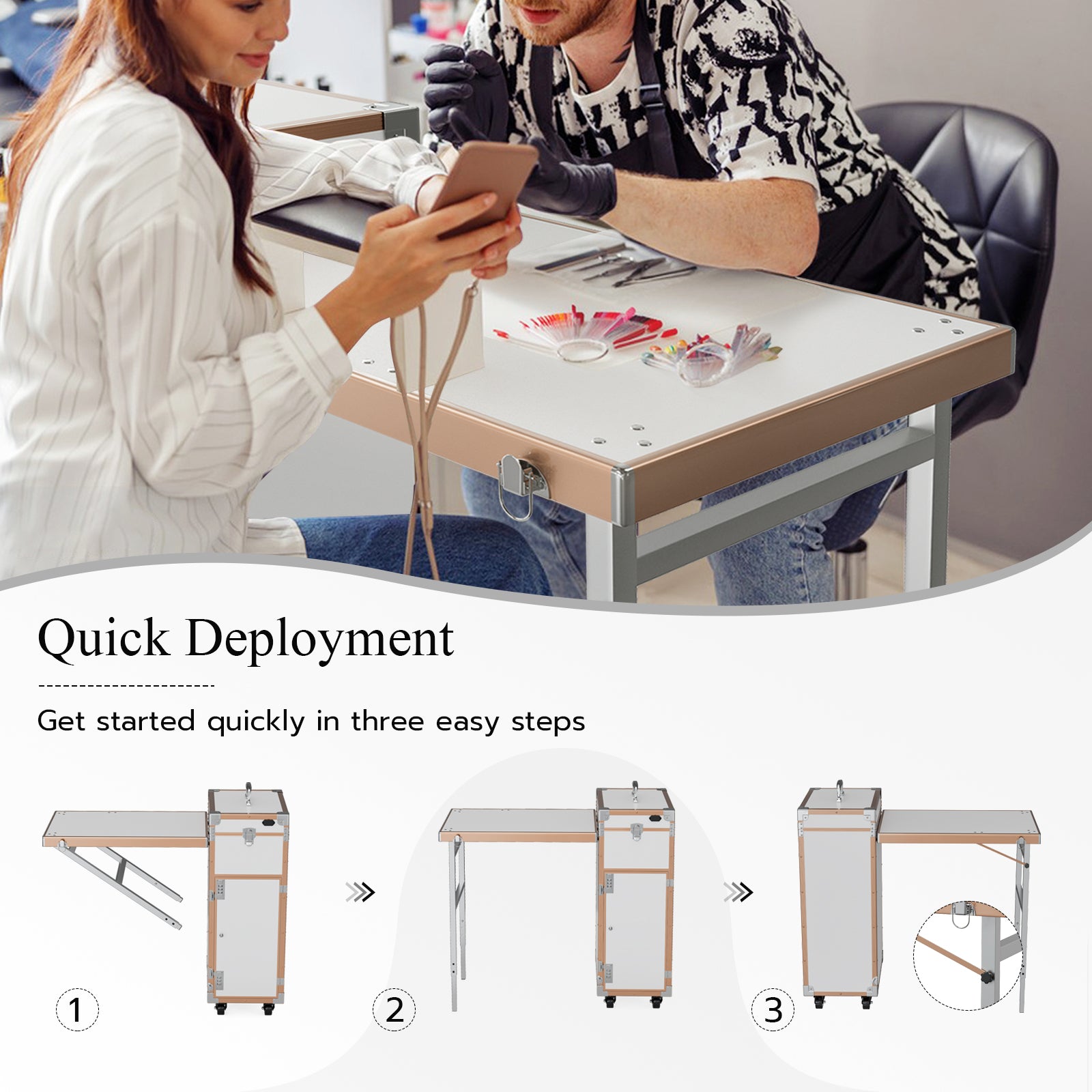 Portable Nail Desk, Foldable Manicure Table with Detachable Desk Top