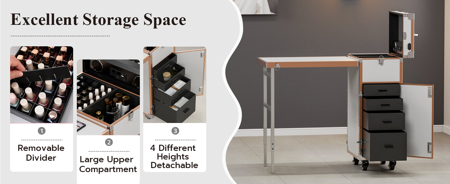 - Adequate Storage Space - Ample storage space and reasonable partitioning. Compartment space is perfect for keeping nail polish or lipstick.