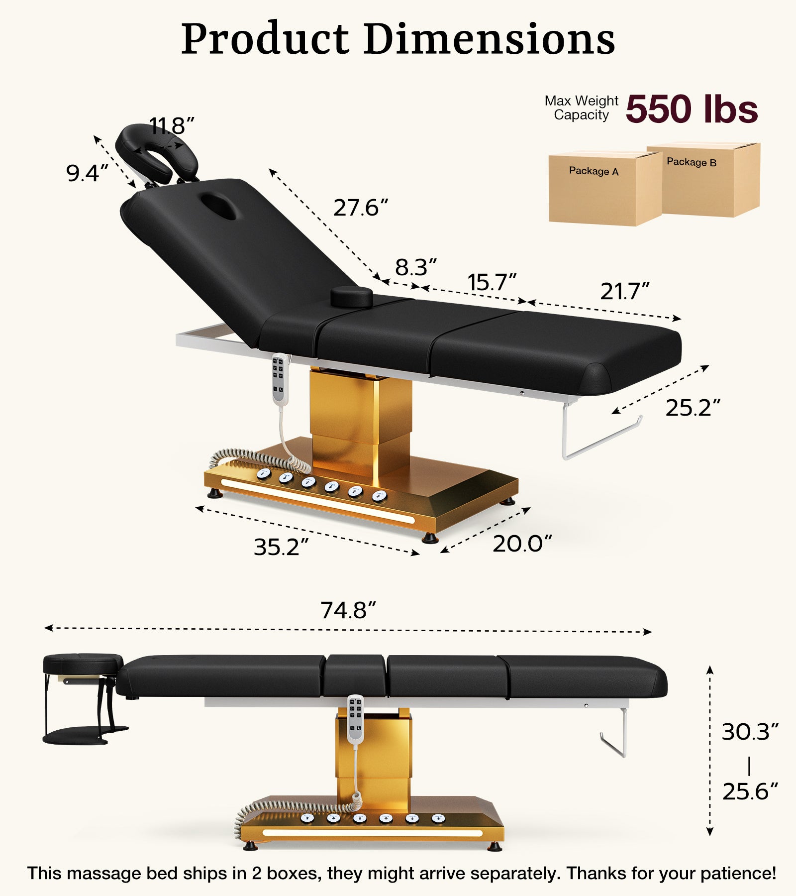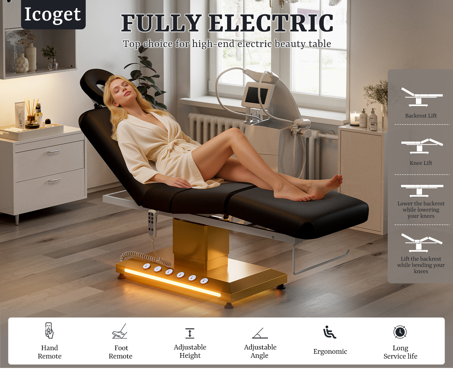 Electric Height Adjustable Esthetician Bed, Stretchable Feetrest