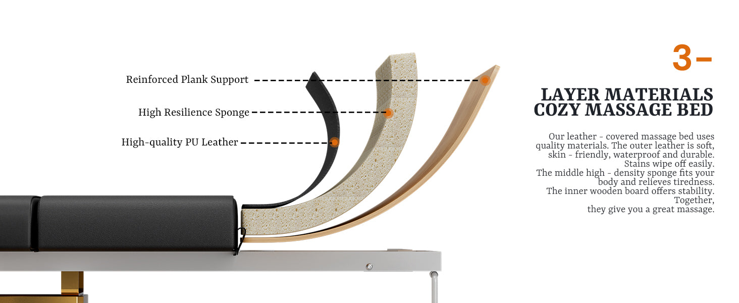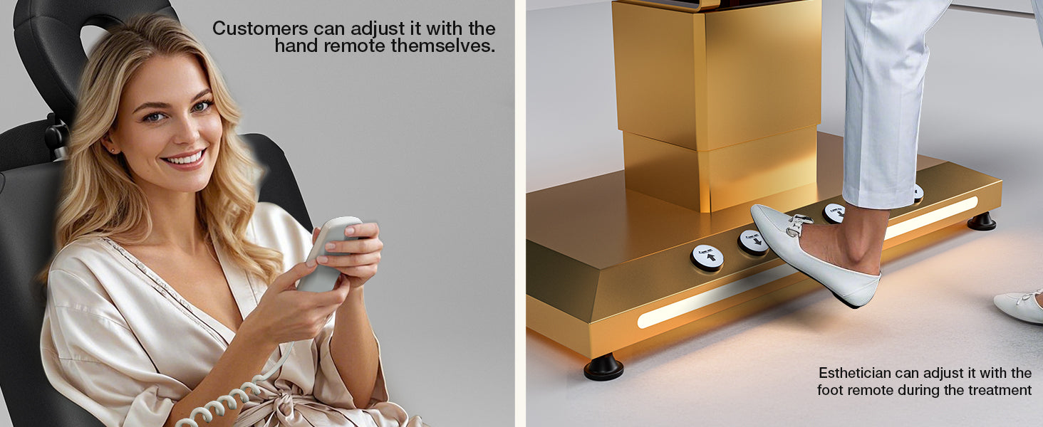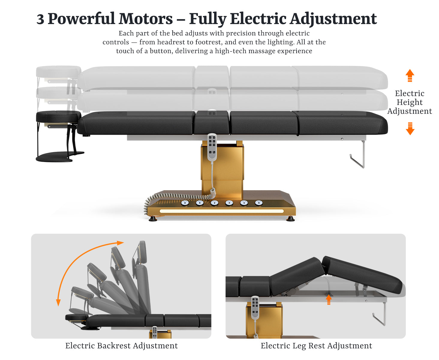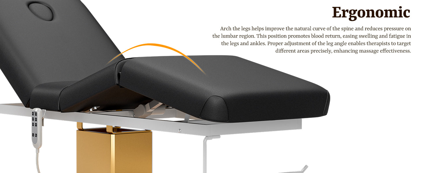 High-Performance Silent Motors: This electric beauty bed is equipped with 3 powerful motors that ensure smooth and precise adjustments to the bed’s height, backrest angle, and leg rest incline.