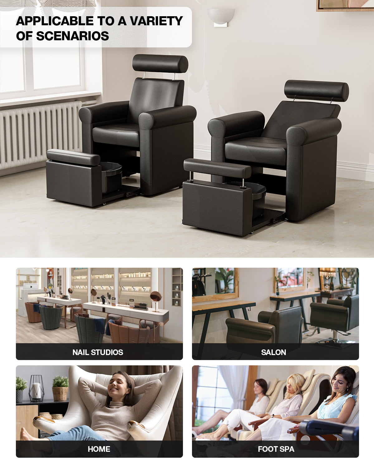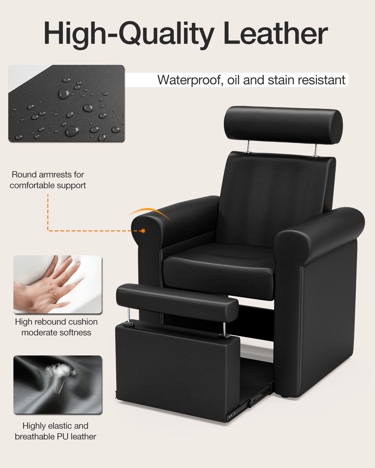 - Easy to Install and Maintain: Designed for hassle-free assembly, this pedicure chair is suitable even for those with minimal experience. Our dedicated customer support team is available around the clock. The durable, waterproof black PU leather is easy to clean and maintain for long-term use